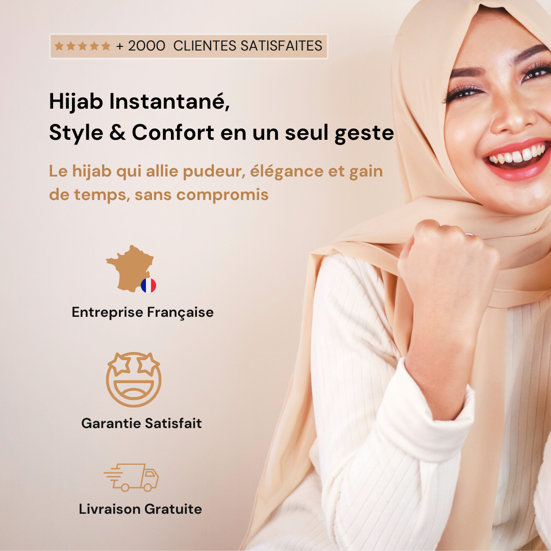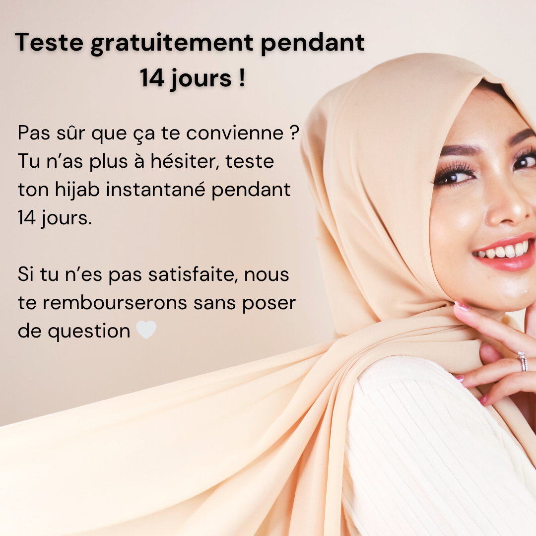 Grâce à un système de maintien intégré, notre Hijab Instantané s’enfile en quelques secondes et reste en place toute la journée. Un vrai gain de temps… et de sérénité.